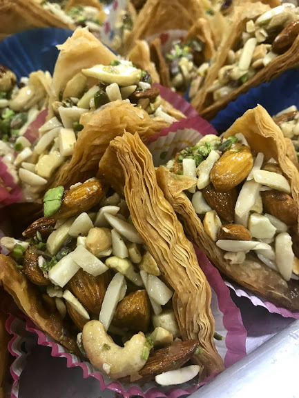 לקינוח תוכלו ליהנות מכנאפה וקפה משובחים במאפיה הסמוכה Abu Gharbia Sweets, או להרחיק לכת (7 דקות הליכה נוספות שעשויות להיות נחוצות לכם בשלב זה), ל- Pistachio Sweets. מזהירה מראש שהביקור כאן לא פשוט עבור חובבי המתוקים שבינינו, אני באופן אישי הרגשתי כמו ילד בחנות ממתקים ונדרשו שני גברים חסונים לעצור אותי מלזלול את כל תכולת החנות. את המבחר העצום שמוצע כאן, תוכלו לנשנש בדרככם חזרה למלון או לחלופין לעלות אל הקומה העליונה המתפקדת כבית קפה. בין כנאפה לבקלוואה, אל תשכחו להרטיב קצת את הפה (ולא בריר)- אופציה מוצלחת היא דוכן שייקים הממוקם מטרים ספורים משמאל לחנות (אם עומדים מולה).