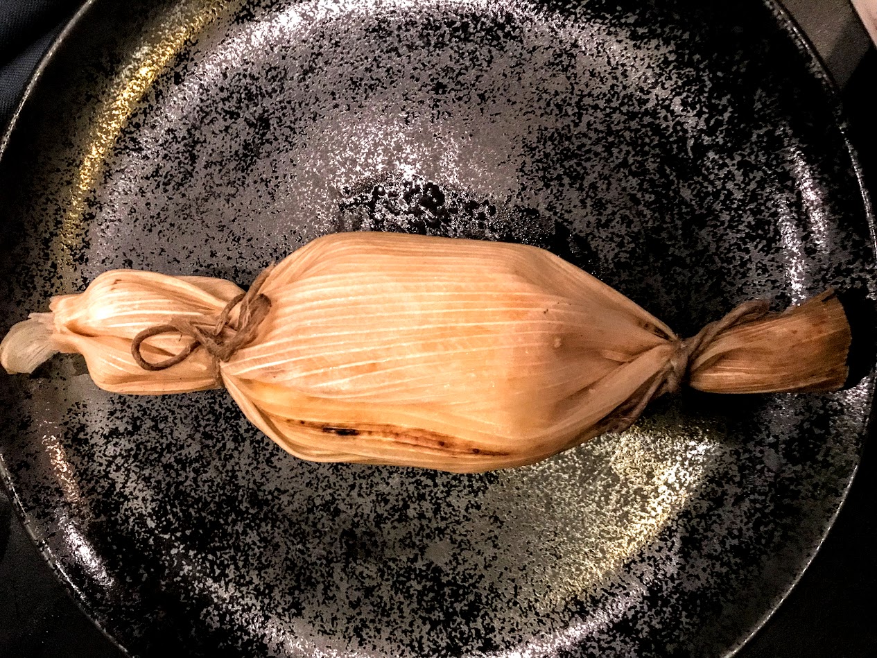טמאלס במילוי של קמח תירס, גבינות וכרישה קונפי