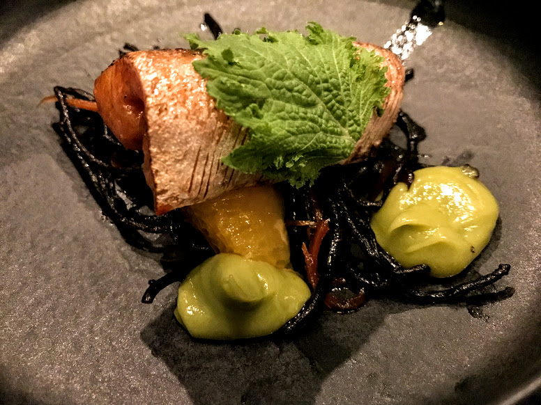 סלמון צרוב בלהבות על סלט איג'יקי וקרם אבוקדו חלפיניו