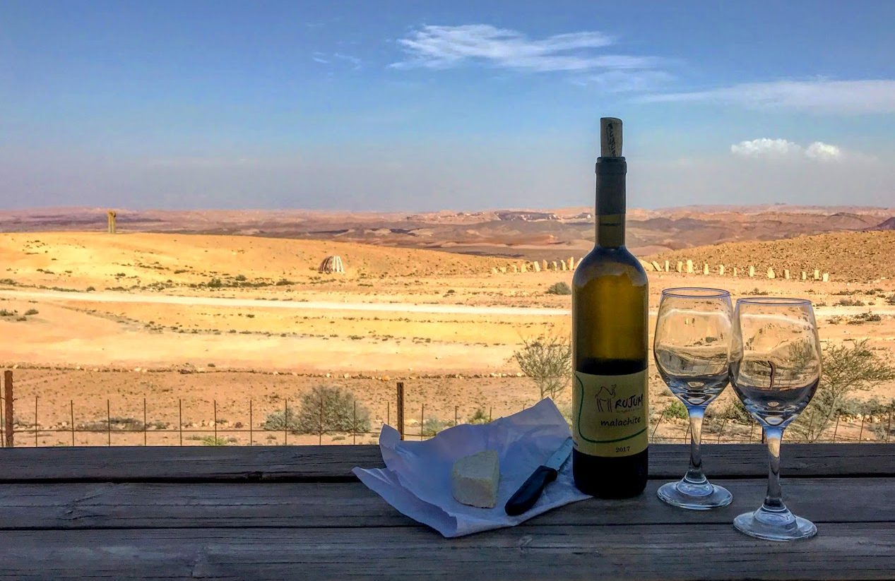 עם הגיענו שלפנו חיש מהר גבינות שהצטיידנו בהן בעצירה ב"חוות קורנמל" וחלצנו בקבוק שרדונה קר ושווה שזיו (הבעלים של צל מדבר) מכין ביקב של החאן. תוסיפו לזה דממת אלחוט, אווירה של חופש ושנ"צ של אחרי שכרות וקיבלתם אחה"צ רומנטי מושלם. בהקיצנו (בקושי רב), שמנו פעמינו אל הר גמל לראות שקיעה ומשם המשכנו אל אזור התעשייה, בו הפכו שלל האנגרים נטושים לאוסף של בתי קפה, מסעדות ושאר בתי עסק, מצפה סטייל.